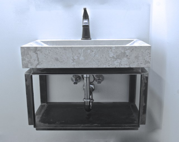 Kitchen - custom made furniture and technology installations and complete master designing. We are offering steel frames out of welded inverted angle-iron, that can accomodate any of your desired materials for the functional surfaces in between - such as drawers, tops, doors and shelving. The comparably light but extremely sturdy frame concept allows for cantilevered furniture with a small footprint, e.g. for "floating" center islands, wall or ceiling hung furnitures. Center islands, carts, bars, tables and combinations can be designed with hardware technology for elements to be movable, turnable or pivot. The steel is wire-brushed and thus expresses a precious while rugged surface; we coat to your specifications. Doors and drawers can be powered, light fixtures included, and high-tech appliances, media technology and remote control functions integrated.