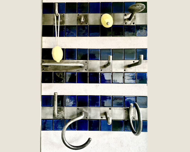 Forged steel hooks on a rod that is set in between ceiling and floor for your kitchen.