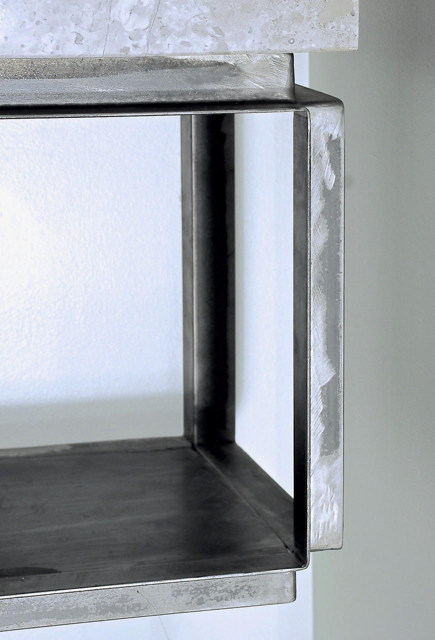 The scaffolds are thought to be wall-mounted into existing wall studs under dry walls, or into stone walls (they can not be just screwed into a dry wall). As alternative, we can offer objects that can stand on the floor. Our scaffolds will be custom made to fit under your square sink, double- or triple sink. The scaffold concept bases on accommodating rectangular sinks to be set in a scaffold or on top of a scaffold.